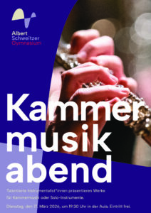 Wir laden Sie und euch herzlich zu unserem Kammermusikabend in die Aula des ASG ein.