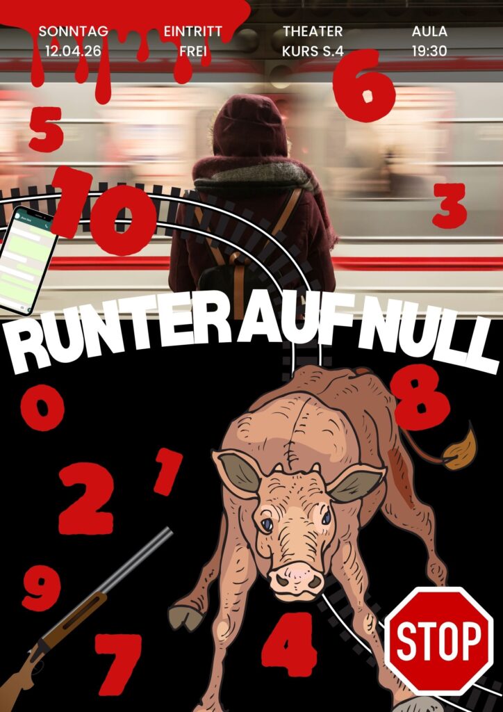 Der Theaterkurs des S4 lädt ganz herzlich zu ihrem StĂĽck „Runter auf Null“ ein.