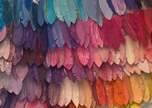 Entstanden ist der Corona-Phoenix im Kunstunterricht während der Pandemie. Als Material dienten leere Corona-Testpackungen, die von den Schüler*innen im Zuge der Farbenlehre gesammelt, bemalt und zu farbigen Federn weiterverarbeitet wurden. Durch dieses Upcycling wird ein alltägliches Symbol der Pandemie künstlerisch verwandelt. Der Phoenix steht für Neubeginn und Veränderung. In einer Zeit voller Einschränkungen setzten die Schüler*innen mit Farbe, Kreativität und Teamarbeit ein sichtbares Zeichen der Hoffnung.