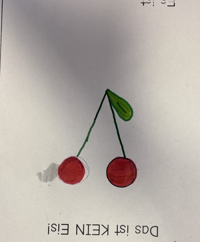 Kopf anstrengen, aber mal anders! Die 6c hat im Vertretungsunterricht Bilder von Kirschen, Regenschirmen oder zum Beispiel Vögeln erstellt, obwohl die Anfangssituation sich schwierig gestaltete: Sie bekamen die Anfangszeichnung von einem Eis, einer Tanne oder einer Wolke, doch es durfte alles werden, außer einem Eis, einer Tanne oder einer Wolke.