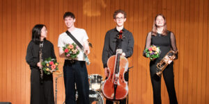 Ein besonderer musikalischer Abend erfüllte am Dienstag, den 24. Februar 2026, die Aula des ASG. Beim diesjährigen Preisträger*innen Konzert standen vier herausragende Musiker*innen aus dem S4 im Mittelpunkt. In einem abwechslungsreichen Programm präsentierten sie ihr Können vor einem begeisterten Publikum und wurden zugleich feierlich für ihre außergewöhnlichen Leistungen ausgezeichnet.