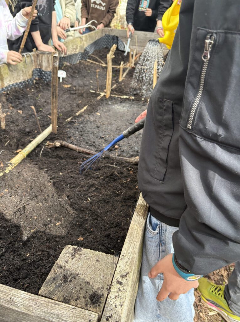In den Hochbeeten wird bereits fleißig gearbeitet: Unkraut wird entfernt, die Erde gelockert und die Beete sorgfältig vorbereitet. Schritt für Schritt entstehen so optimale Bedingungen, damit in den kommenden Wochen die ersten Samen ausgesät werden können.