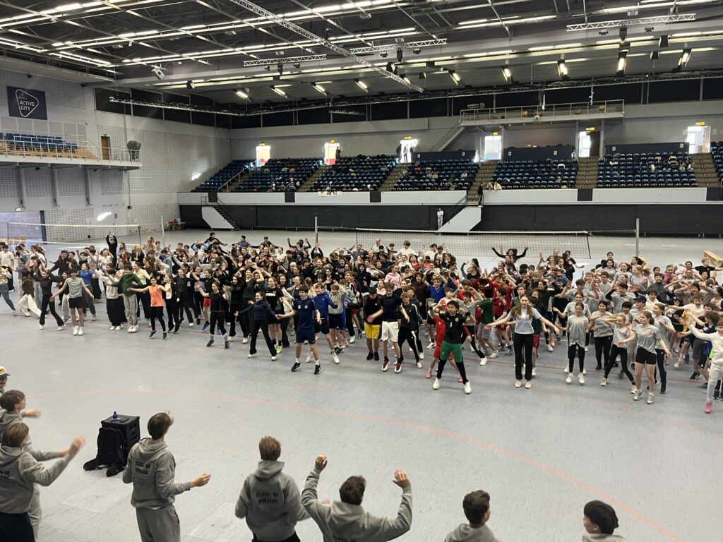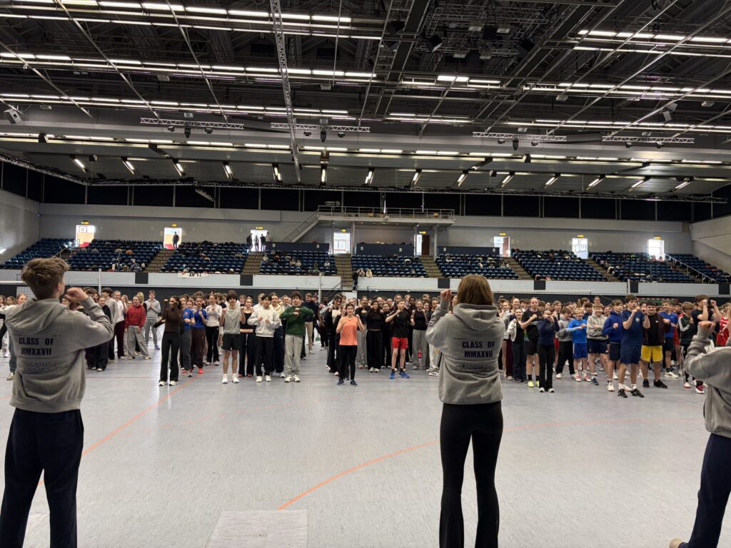Organisiert wurde das Hallensportfest von der Sportfachschaft sowie dem Sportprofil des 11. Jahrgangs. Los ging’s mit einem gemeinsamen Warm-up, damit sich keiner verletzt.