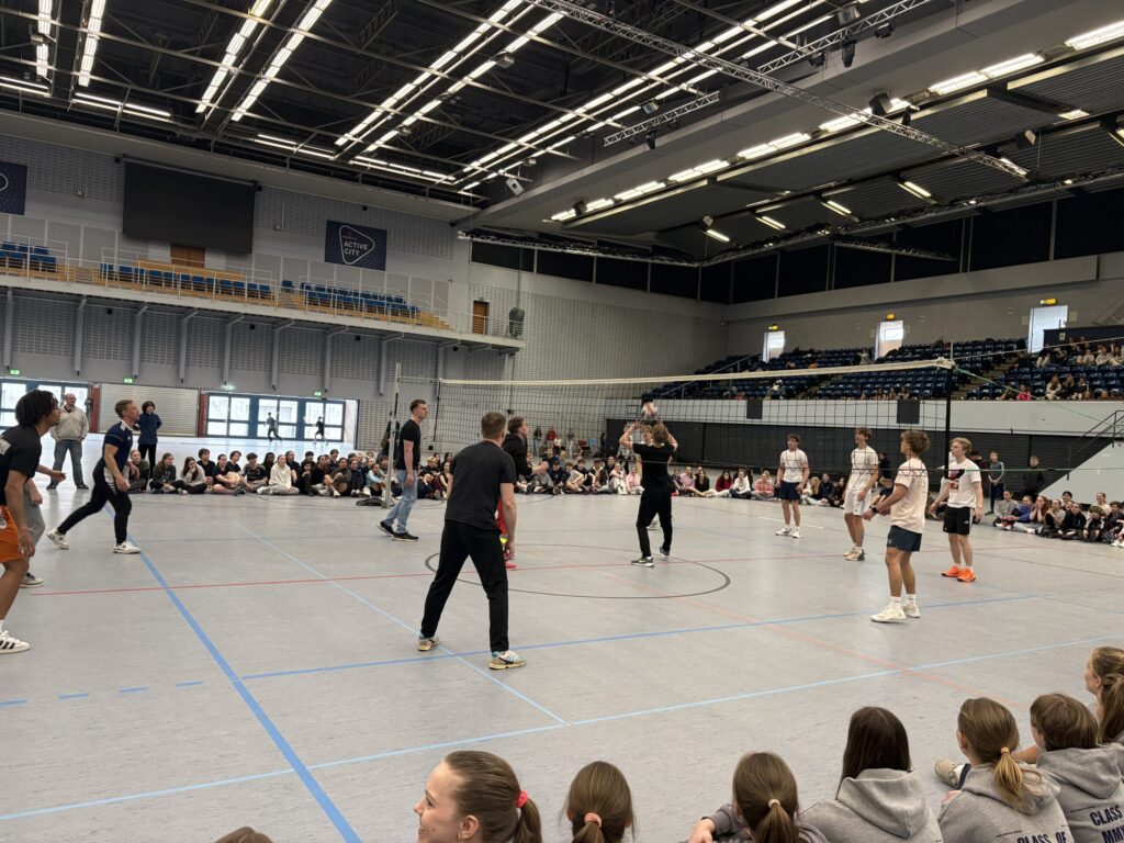 Bevor es zur Siegerehrung ging, stand das traditionelle Duell an: Lehrer gegen das Sportprofil im Volleyball. In einem spannenden Match zeigte das Sportprofil vollen Einsatz und konnte sich in diesem Jahr den Sieg sichern.