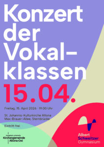 Die sechs Vokalklassen der Jahrgänge 5 bis 10 laden Sie herzlich zum Konzert in der Kulturkirche Altona – St. Johannis ein!