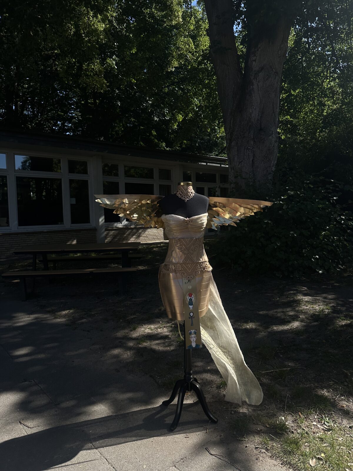 Das Kunstprofil von Frau Sobe hat sich im 2. Semester mit dem Thema Mode auseinandergesetzt. Ziel war es, ein außergewöhnliches Kleidungsstück zu entwerfen – gefertigt aus Papier.