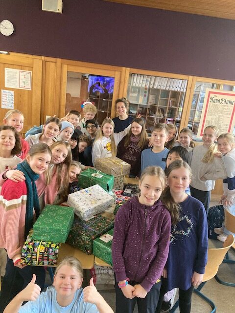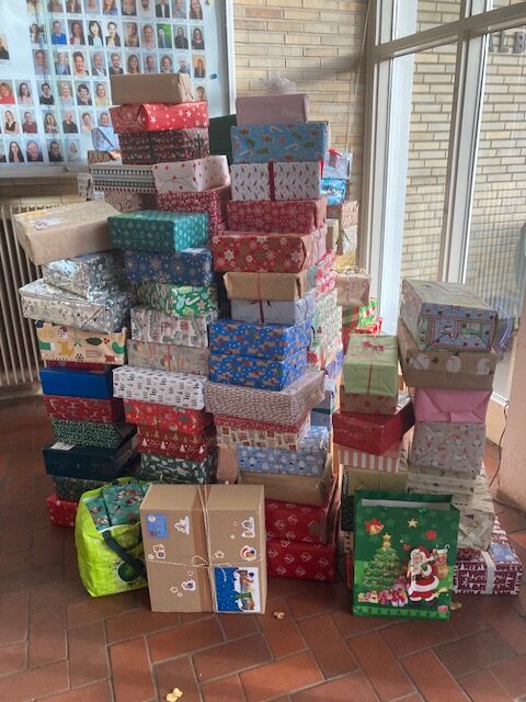 Auch in diesem Jahr hat sich das ASG wieder an der Weihnachtspäckchenkonvoi-Aktion beteiligt und in den vergangenen zwei Wochen stolze 160 Päckchen befüllt und wunderschön verpackt. Anfänglich hatten erst sehr wenige Päckchen ihren Weg ins Eingangsfoyer des ASG gefunden, doch mit einem grandiosen Endspurt aller Beteiligten ist ein beeindruckender Geschenkeberg entstanden, der nun bereits auf dem Weg nach Osteuropa ist. Damit wird bedürftigen Kindern in entlegenen und ländlichen Regionen hoffentlich ein Strahlen ins Gesicht gezaubert.