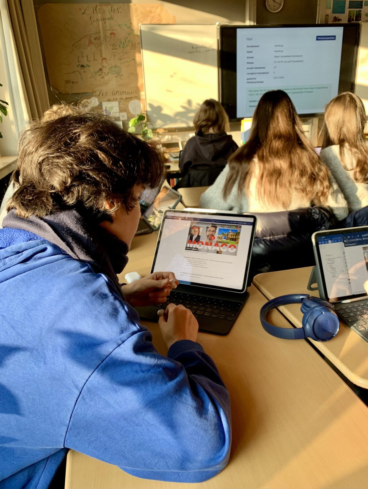 In Teams recherchieren die SchülerInnen in Texten, Videos und Audiodateien zur französischen Sprache und Kultur und lösen knifflige Aufgaben.